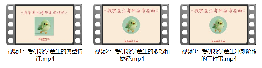 1、视频介绍 《数学差生考研备考指南》系列视频 我做了三期视频,目的是教会数学差生如何在考研数学中做到逆天改命。这些视频累积有十万多的播放量,在B站获得了很多的好评和认可。对于每个数学差生来说,这三期视频不容错过,欢迎大家收藏和保存。最后,衷心的劝告大家:数学,是可以自学的,但是对于考研来说,你是第一次。千万不要闭门造车,一定要多听多看,一[...]