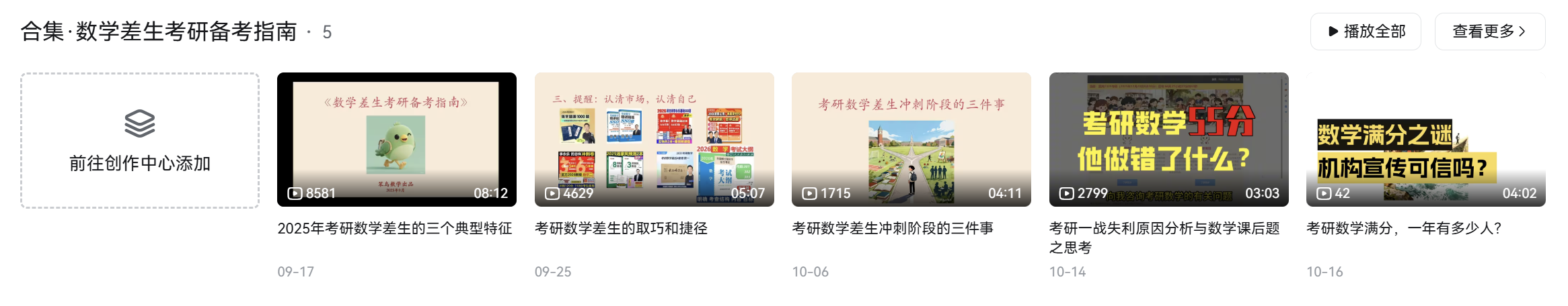 最近,我在B站发了一个视频系列,题目是《数学差生考研备考指南》。